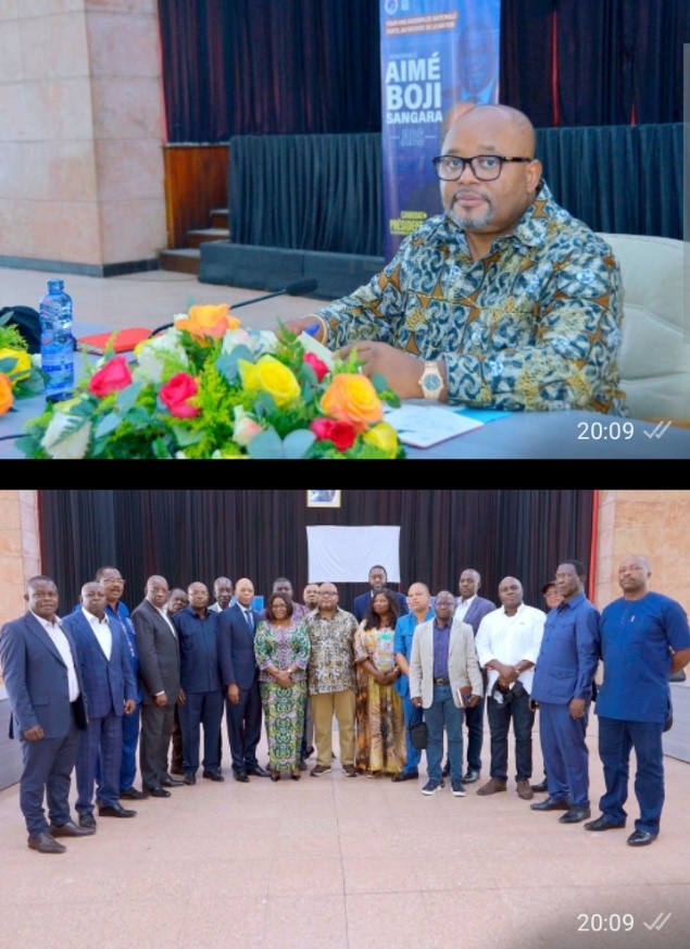 A cette occasion, Aimé Boji Sangara, Candidat confirmé par l’Union Sacrée de la Nation, a démarré ses préparatifs par une série d’échanges consultatifs avec les Elus du peuple. En premier lieu, celui qui est présenté par la majorité parlementaire comme le Successeur de Vital Kamerhe a échangé avec les Présidents des caucus des députés des 26 provinces que compte la RDC. Cette première étape a permis aux représentants des caucus provinciaux de réaffirmer leur soutien unanime à la candidature commune portée par l’Union sacrée de la Nation.