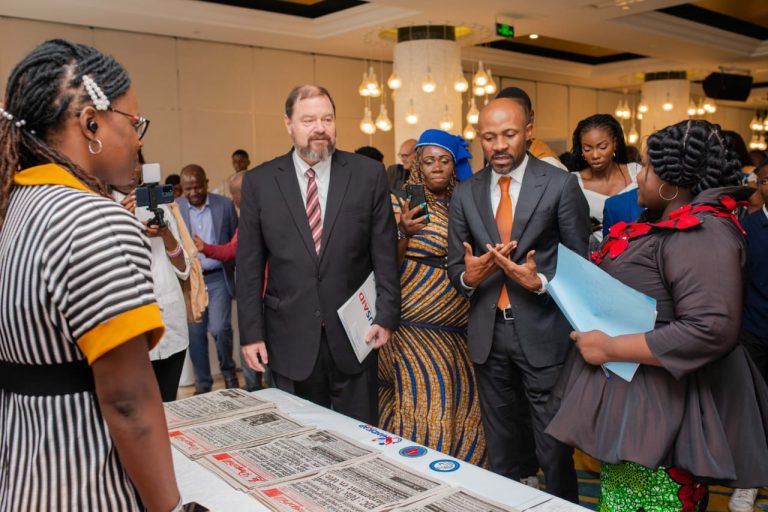 Home » Patrick Muyaya Katembwe, Ministre de la Communication et Médias, visitant le stand de La Prospérité, à Fleuve Congo Hôtel, lors de la tenue de la 5ème édition de la Foire des femmes des médias, le jeudi 21 mars 2024.